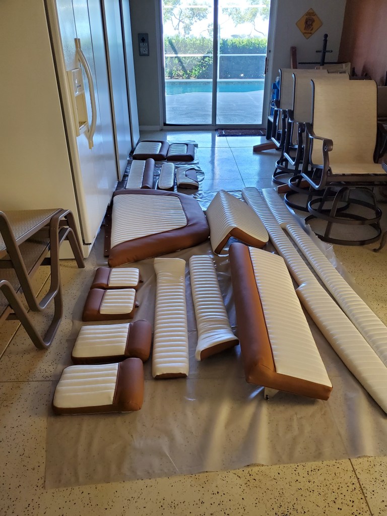 CUSTOM CANVAS DESIGN AND CUSHIONS FEATURING: DODGERS – BIMINIS – COCKPIT COVERS – HELM COVERS – RV BRAS- T-TOP CANVAS – SAIL COVERS – REPAIRS AND RESTITCH – GLASS REPLACEMENT – CUSHION COVERS – WINDOW COVERS – ENCLOSURES – BOAT CUSHIONS – LANAI FURNITURE – BOAT INTERIORS – RV CUSHIONS – BUSINESS LICENSED AND INSURED PROFESSIONAL SERVICES SINCE 1990